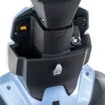 Wszystko, co najważniejsze pod ręką Dzięki schowkowi pod kolumną kierowniczą przewieziesz to, co niezbędne np. butelkę wody lub klucze. Pod siedzeniem są dwa zamykane schowki oraz siatka. Pojazd posiada również uchwyt na torby, a także duży, pojemny kuferek znajdujący się z tyłu skutera, co daje łącznie sporą pojemność transportową.  Kuferek ten jest w zestawie wraz ze skuterem bez dopłaty.