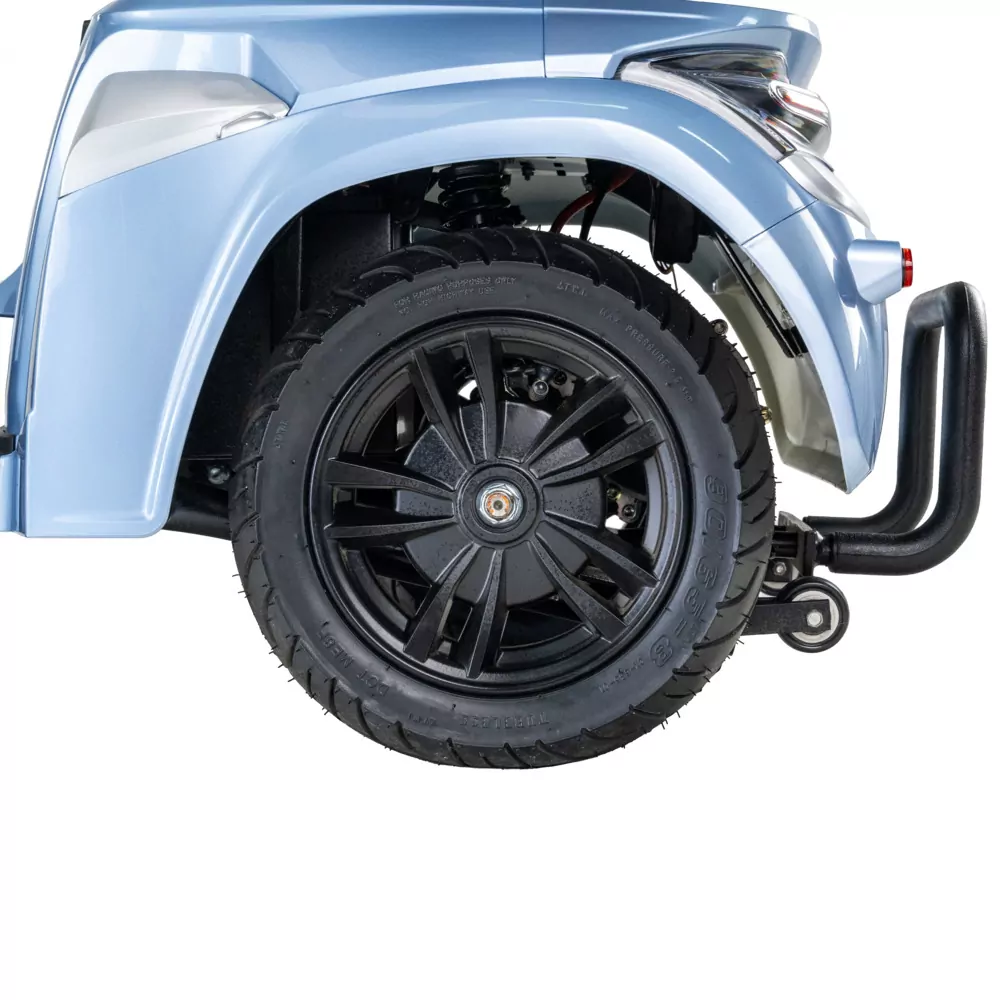 Stabilność, którą dają 4 koła, podkreślają dodatkowe kółka, znajdujące się z tyłu pojazdu. Skutecznie chronią pojazd przed niebezpiecznym odchyleniem, uniemożliwiając wywrotkę.