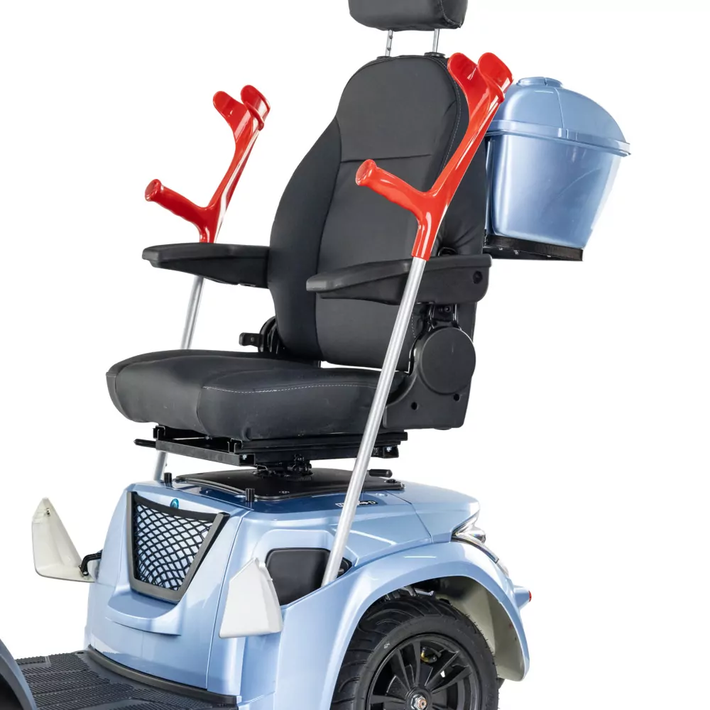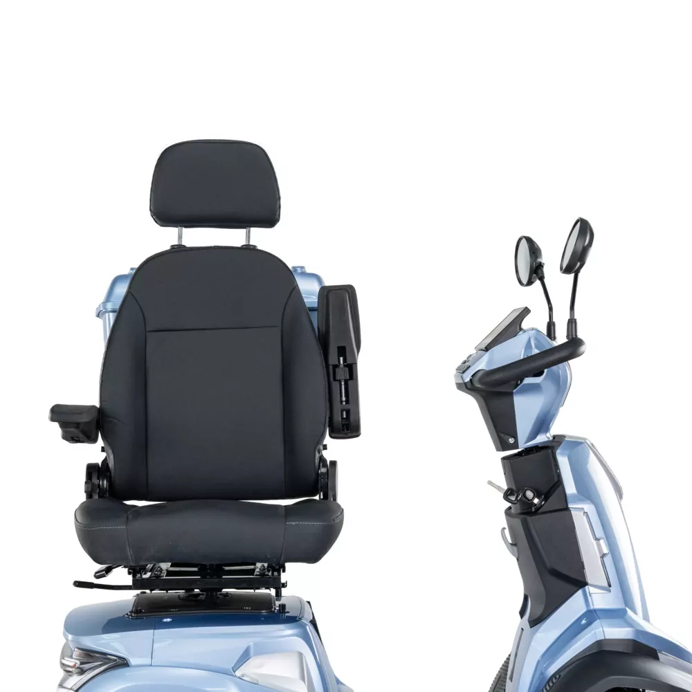 Komfort podczas podróży zapewni wygodny regulowany fotel z odchylanymi podłokietnikami, które posiadają możliwość regulacji wysokościFotel jest obrotowy, dzięki temu wsiadanie jak i wysiadanie z pojazdu jest ułatwione. Wszystko to pozwoli na dopasowanie idealnej pozycji do przemieszczania się.