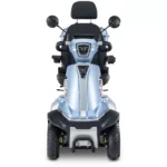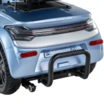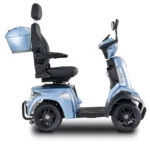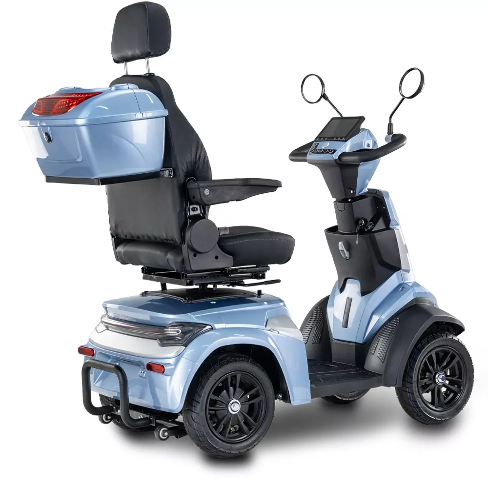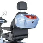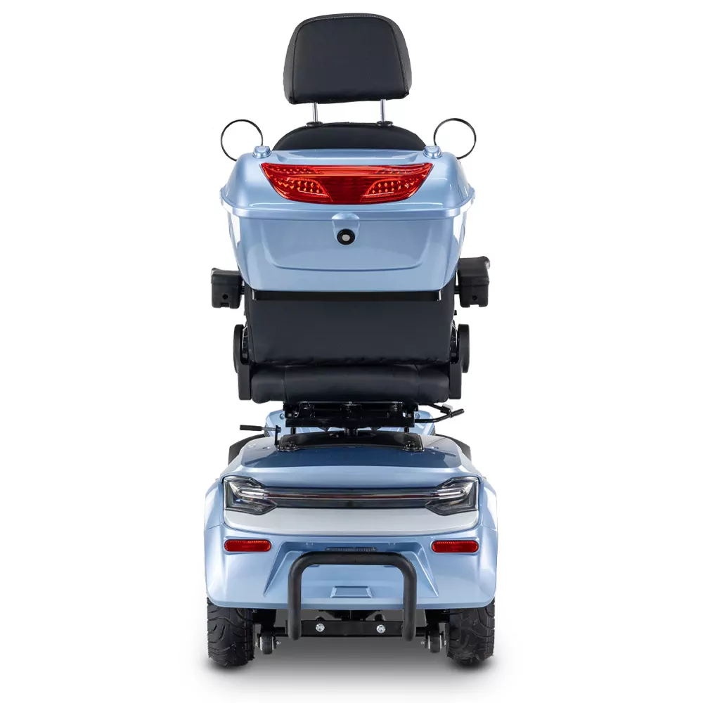 Skuter elektryczny BILI BIKE SHINO G6-3 z kuferkiem, 20km/h jest czterokołowym pojazdem elektrycznym pełnym udogodnień dla użytkowników. Posiada odchylane podłokietniki oraz wygodne siedzisko z regulacją jego długości, które posiada możliwość obrotu – co znacznie ułatwia wsiadanie i wysiadanie. Dzięki dodatkowym kołom pojazd jest bardzo stabilny, wsiadanie i zsiadanie jest wygodne. Pojazd wyposażono w zawieszenie, które znacznie podnosi komfort jazdy. Zamontowany port USB oraz liczne schowki są przydatne w codziennym użytkowaniu. Za bezpieczeństwo odpowiadają automatyczne hamulce elektro-magnetyczne, które zatrzymują pojazd po puszczeniu gazu. Nowoczesność widać w dużym czytelnym wyświetlaczu oraz pełnym oświetleniu LED. Skuter ten gwarantuje niezależność i samodzielność.