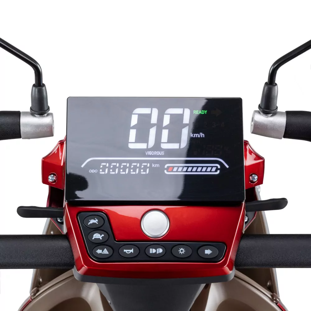 Zastosowany, duży (~7 cali) i przejrzysty wyświetlacz LCD jest łatwy do odczytania nawet przy dużym nasłonecznieniu, jak i w nocy. Na wyświetlaczu można sprawdzić najważniejsze parametry podczas jazdy takie jak prędkość czy stan naładowania baterii. Wyświetlacz pełni również funkcje licznika, pokazując przebyty już dystans, a proste i przejrzyste ikonki informują np. o włączonych światłach.
