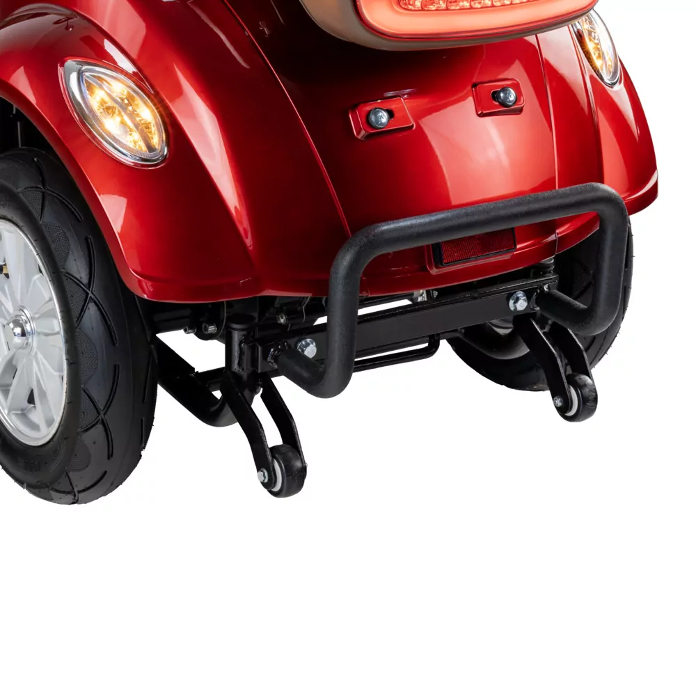 Stabilność, którą dają 4 koła, podkreślają dodatkowe kółka, znajdujące się z tyłu pojazdu. Skutecznie chronią pojazd przed niebezpiecznym odchyleniem, uniemożliwiając wywrotkę.