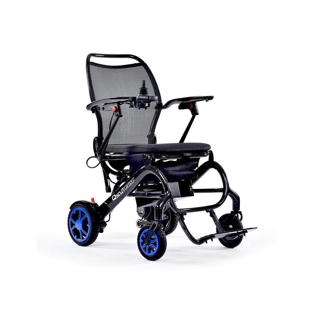 Wakacje bez nieporęcznego wózka? Wózek inwalidzki elektryczny Q50 R Carbon składa się tak absurdalnie kompaktowo, a po złożeniu (długość 370 mm x szerokość 570 mm x wysokość 767 mm), zmieści się niemal wszędzie! Wsiądź do pociągu, wskocz do autobusu lub schowaj do bagażnika najmniejszego samochodu — jest idealny do odkrywania miejsc bliskich i dalekich. Nieweiarygodnie lekki, można go również łatwo podnosić i wysuwać. A kiedy nadejdzie czas lotu, Q50 R Carbon jest zatwierdzony przez IATA* również do transportu lotniczego.