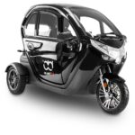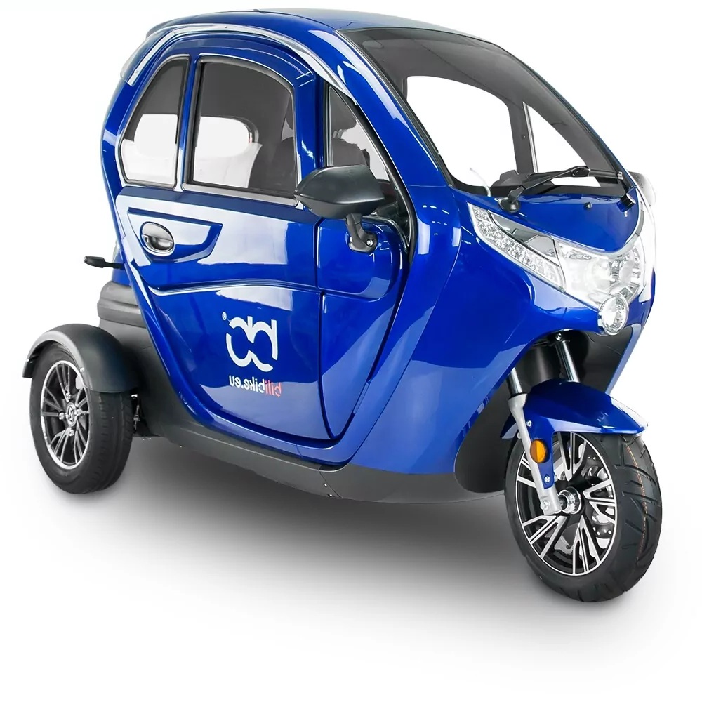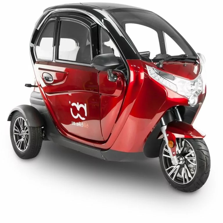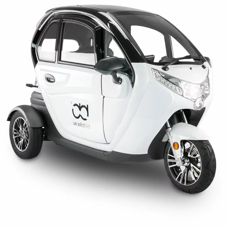 Skuter elektryczny CITY GO jest trójkołowym pojazdem elektrycznym z zabudowanym dachem. Posiada wygodny fotel kierowcy oraz szeroką kanapę dla pasażera. Dzięki dachowi oraz drzwiom, które posiada skuter, podróż odbywa się w komfortowych warunkach. Warunki atmosferyczne nie mają znaczenia. Podczas podróży nie doskwiera wiatr czy deszcz. Dobrą widoczność zapewniają szyby, które są obecne na każdej stronie pojazdu.