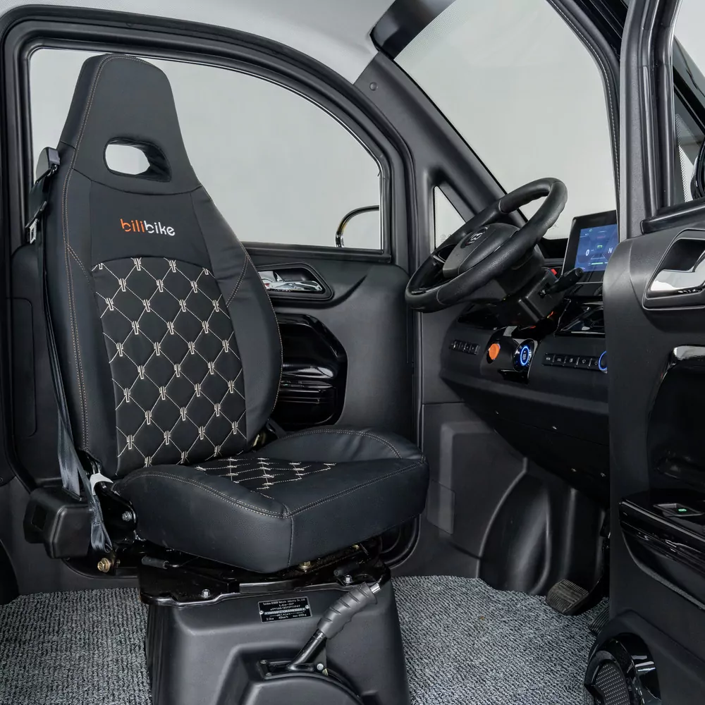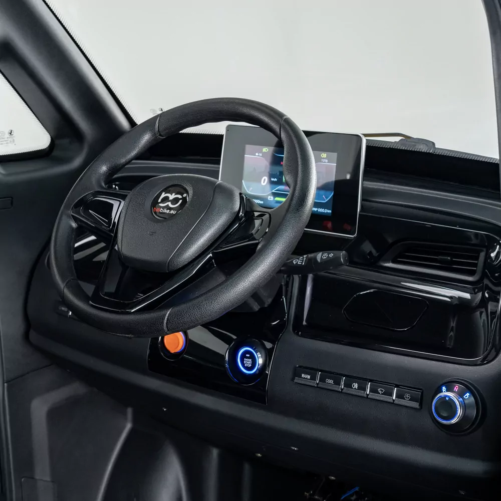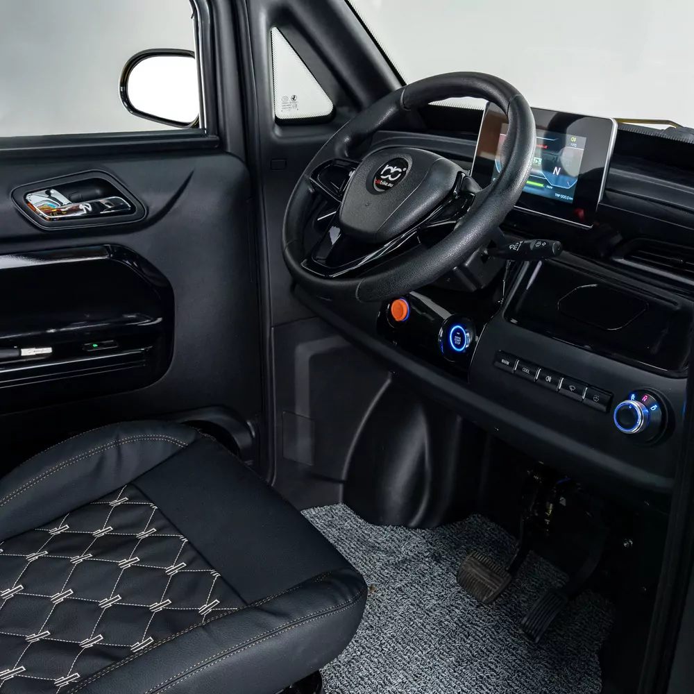 Mini samochód elektryczny, w przeciwieństwie do standardowego skutera jest większy i również lepiej wyposażony. Jego konstrukcja sprawia, że bardzo blisko mu do standardowego auta. Większy rozmiar budzi szacunek na drodze i znacznie podnosi bezpieczeństwo. Trudno nie zauważyć takiego cudu na drodze. Czterokołowiec ma większe możliwości transportowe oraz bardziej zaawansowane wyposażenie, posiada rozbudowany system rozrywki wraz z kamerą cofania, dwie elektryczne szyby, centralny zamek, opcję uruchamiania przyciskiem oraz elektryczną nagrzewnicę, która zapewni ciepło podczas podróży w chłodne dni. Latem przydatne okażą się uchylana tylna szyby, a także szyberdach.