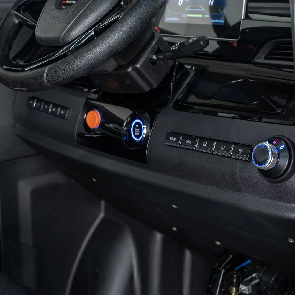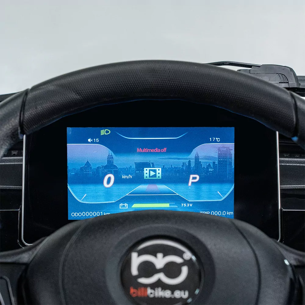 Nie można zapomnieć o centralnym zamku i dwóch pilotach, służących do otwierania i zamykania pojazdu wygodnie wciskając przycisk. Pojazd uruchamia się również jednym przyciskiem, kierunek jazdy określa nowocześnie wyglądające pokrętło.