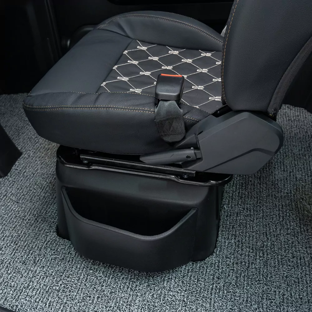 Jego unikalną cechą jest możliwość obrotu o 90 stopni zarówno w lewo jak prawo. Obrotowy fotel to znaczne ułatwienie korzystania z pojazdu dla użytkowników o mniejszej sprawności ruchowej.