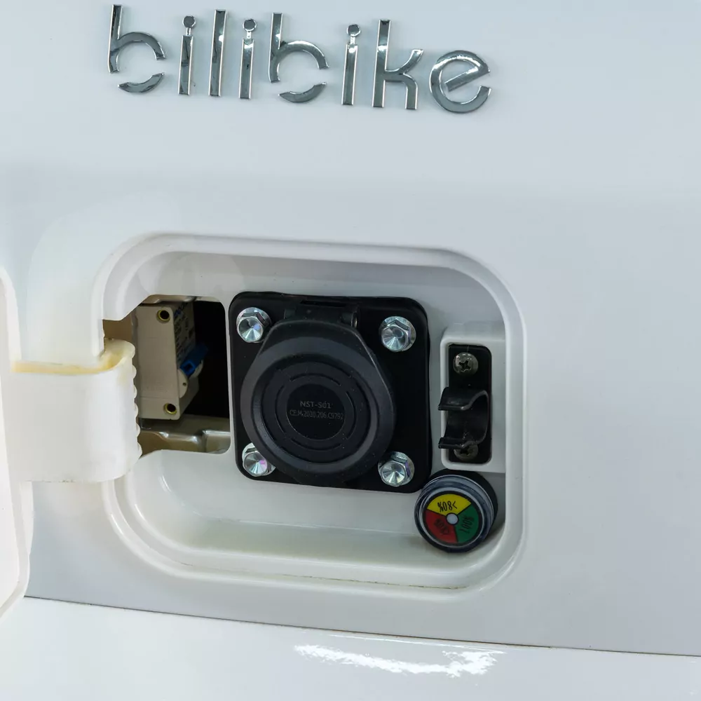Proces ładowania jest prosty i bezproblemowy. Cała elektronika ładowania znajduje się wewnątrz pojazdu! zupełnie tak jak w samochodach elektrycznych. Aby rozpocząć ładowanie, wystarczy podpiąć znajdujący się w zestawie kabel. Port ładowania ukryto pod ergonomiczną klapką.