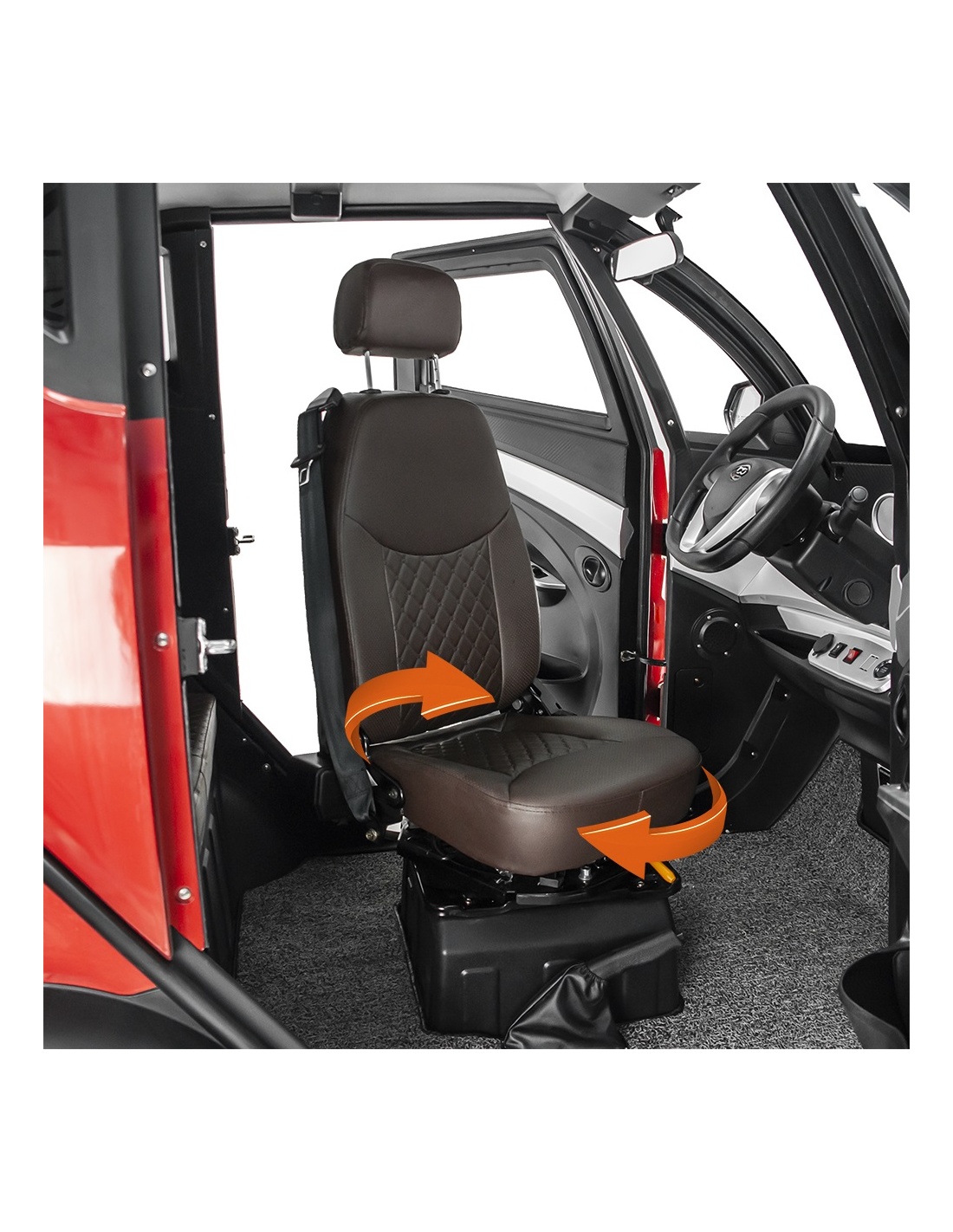 Pojazd zaprojektowano z myślą o wygodzie każdemu użytkownika. Zastosowany, wygodny, fotel posiada opcje regulacji wysokości zagłówka czy też odległości siedziska od kolumny kierowniczej.