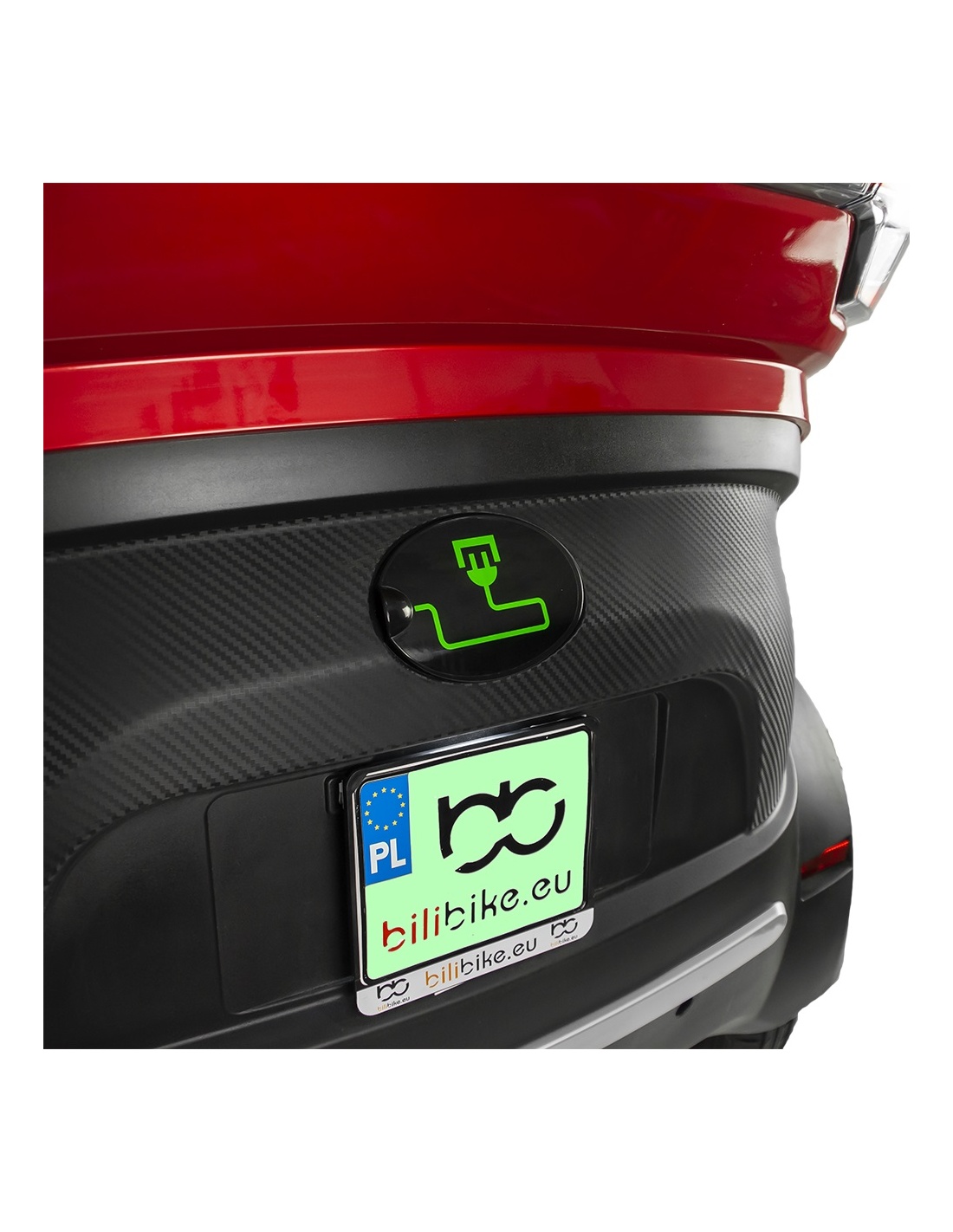 Proces ładowania jest prosty i bezproblemowy. Cała elektronika ładowania znajduje się wewnątrz pojazdu! zupełnie tak jak w samochodach elektrycznych. Aby rozpocząć ładowanie, wystarczy podpiąć znajdujący się w zestawie kabel. Port ładowania ukryto pod ergonomiczną klapką.