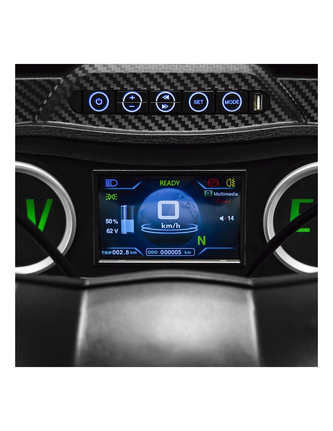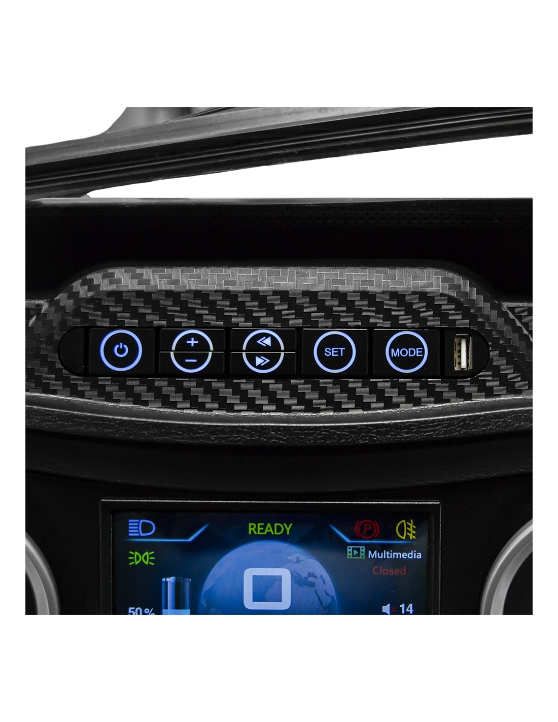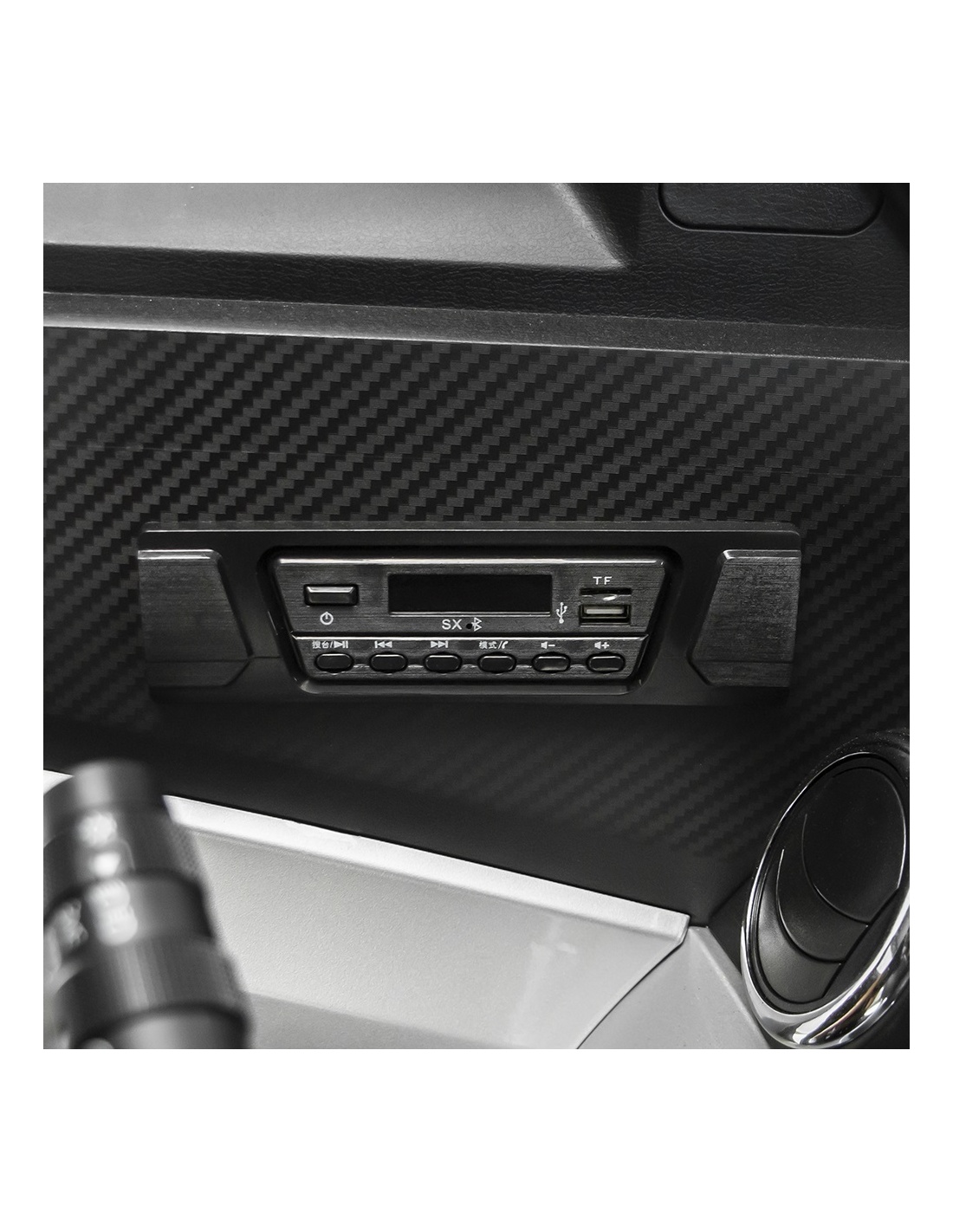 Wbudowany system rozrywki to świetna zabawa i rozrywka podczas jazdy. Błyskawicznie sparujesz z nim swój telefon przez BLUETOOTH. Oprócz możliwości odtwarzania plików z karty micro SD, wbudowany port USB odtwarza pliki z pamięci przenośnej, a dzięki funkcji radia FM masz dostęp do nieograniczonej muzyki czy też najświeższych informacji.