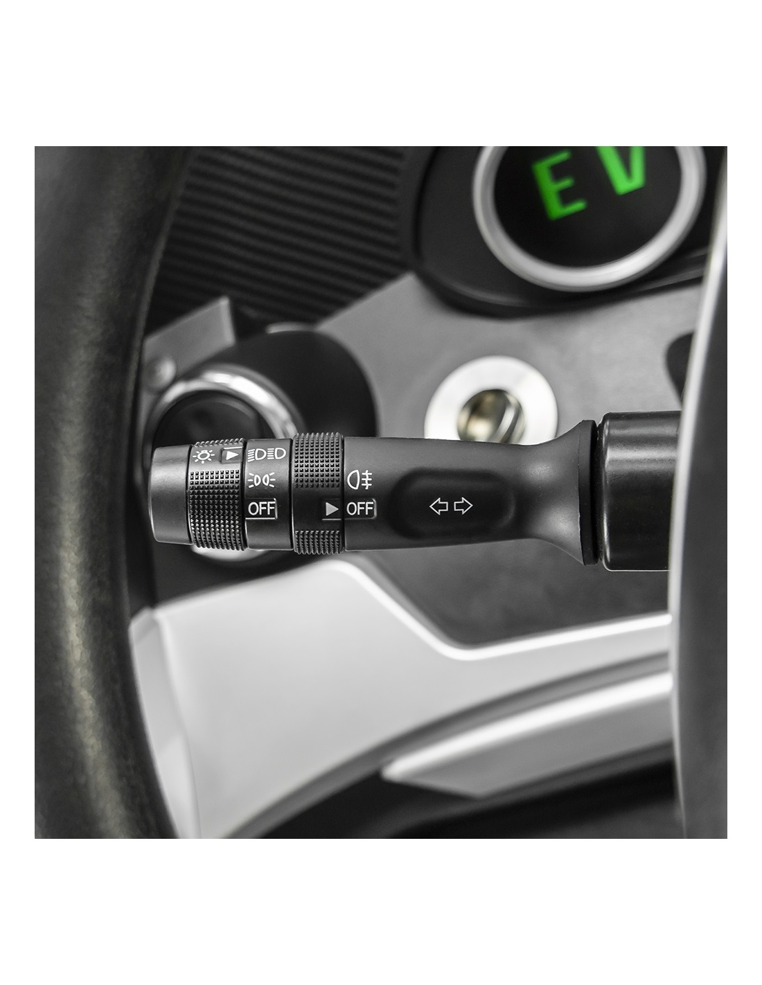 Nie można zapomnieć o centralnym zamku i dwóch pilotach, służących do otwierania i zamykania pojazdu wygodnie wciskając przycisk. Pojazd uruchamia się również jednym przyciskiem, kierunek jazdy określa nowocześnie wyglądające pokrętło.