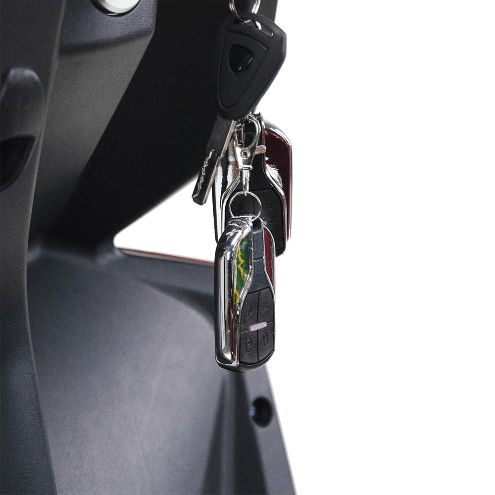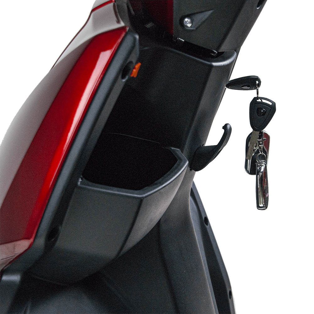 Wszystko, co najważniejsze pod ręką ! Dzięki schowkowi pod kolumną kierowniczą przewieziesz to, co niezbędne. Większy, zamykany schowek pod siedzeniem pozwoli ukryć przewożone rzeczy, ale to nie wszystko – pojazd posiada uchwyt na torby, a gdyby to nie wystarczało, istnieje możliwość rozbudowania o dodatkowy kuferek, który pomieści np. kask.