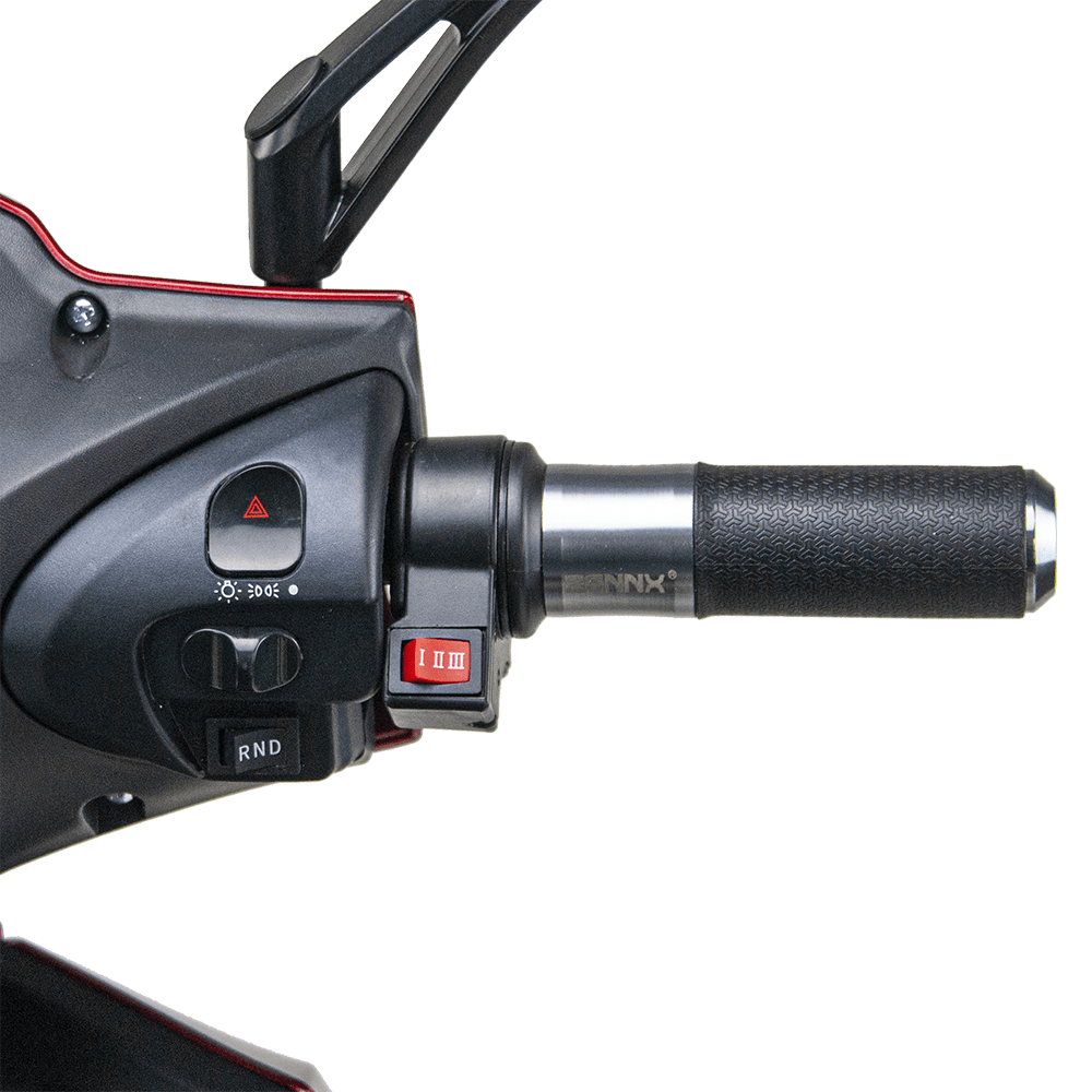 3-stopniowa regulacja maksymalnej prędkości osiąganej przez pojazd pozwala dostosować szybkość poruszania do potrzeb użytkownika. Można poruszać się np. nieco szybciej jak piesi (~10 km/h) lub zmienić kierunek jazdy do tyłu. A wszystko to jednym ruchem ręki.