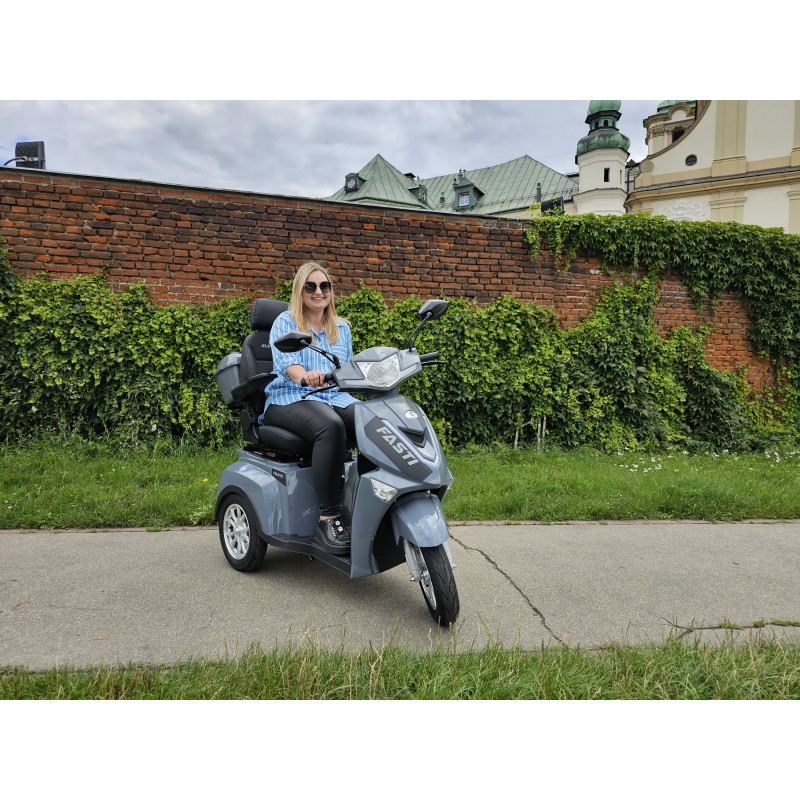 FASTI 3 to najnowszy trójkołowy, zwinny i zwrotny niezabudowany pojazd, który ułatwia poruszanie się. Wyjątkowo łatwo się go prowadzi, a manewry skrętu czy zawracania są przyjemnością nawet na wąskich uliczkach. FASTI 3 wyposażony został w wygodny fotel z oparciem oraz zamykany kuferek do przewożenia podręcznego bagażu.
