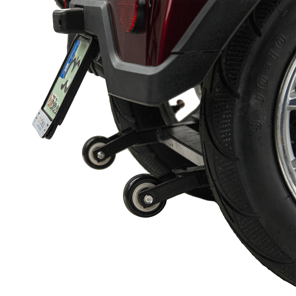 Stabilność, którą dają 3 koła, podkreślają dodatkowe kółka, znajdujące się z tyłu pojazdu. Skutecznie chronią pojazd przed niebezpiecznym odchyleniem, uniemożliwiając wywrotkę.