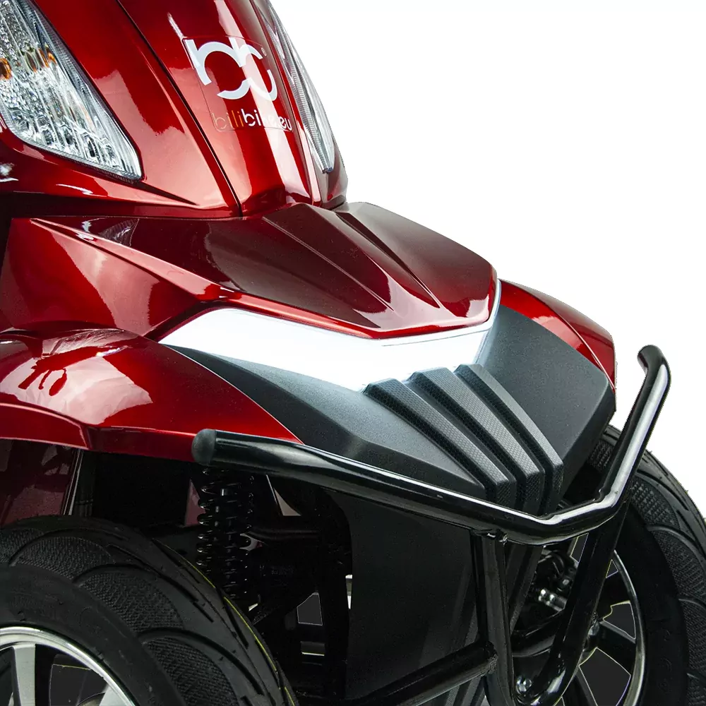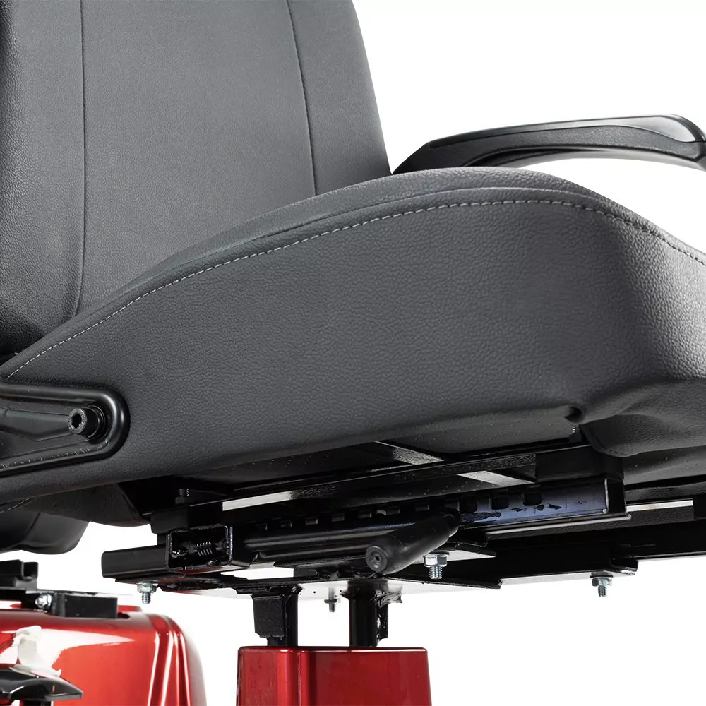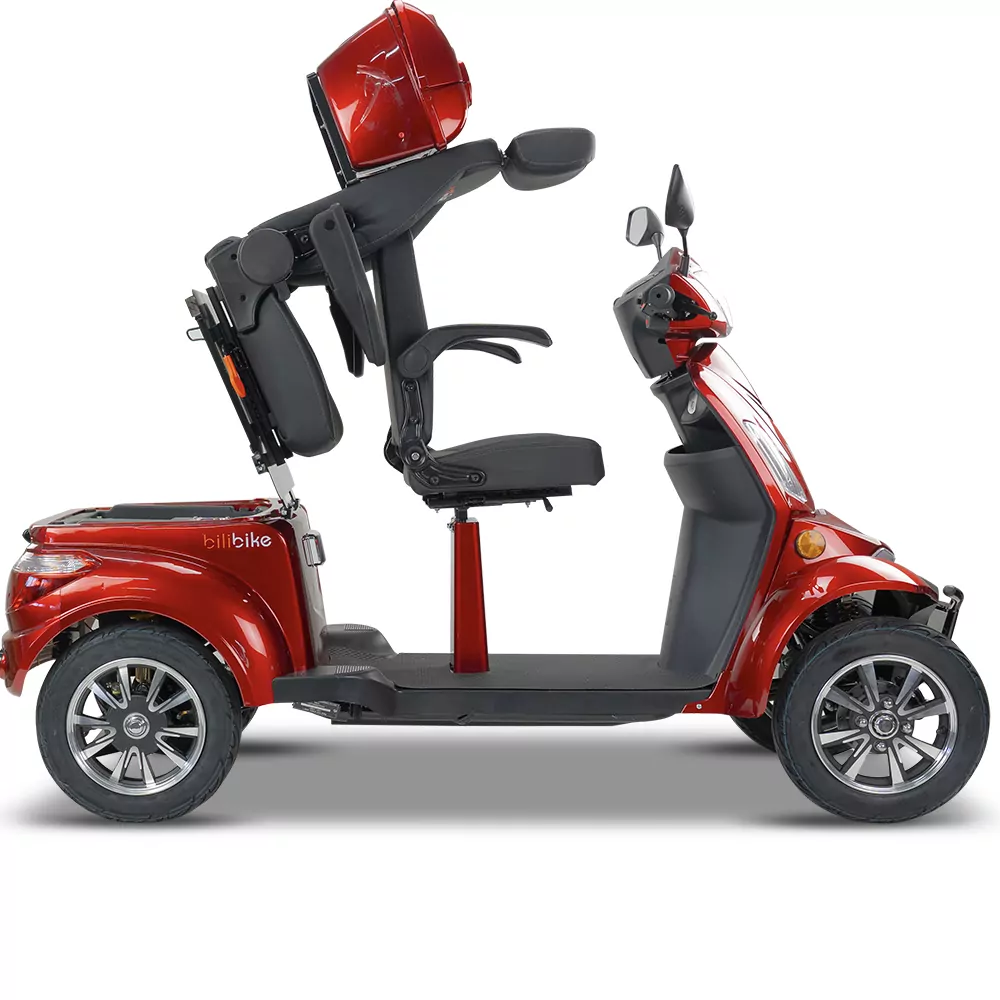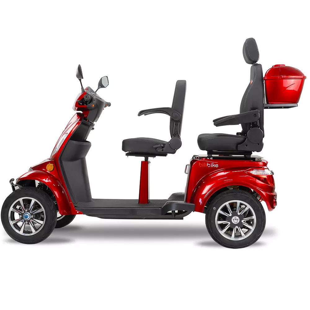 Posiada odchylane podłokietniki oraz wygodne 2 niezależne fotele z regulacją długości siedziska. Dzięki dodatkowym dwóm kołom pojazd jest stabilny, wsiadanie i zsiadanie jest wygodne. Zawieszenie jest zestrojone komfortowo, tak aby zapobiegać wszelkim dolegliwościom bólowym i zapewnić wygodne przemieszczanie bez wstrząsów.
