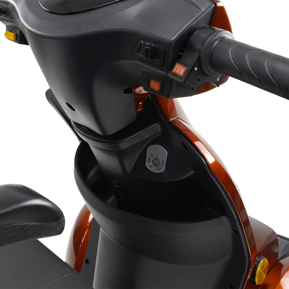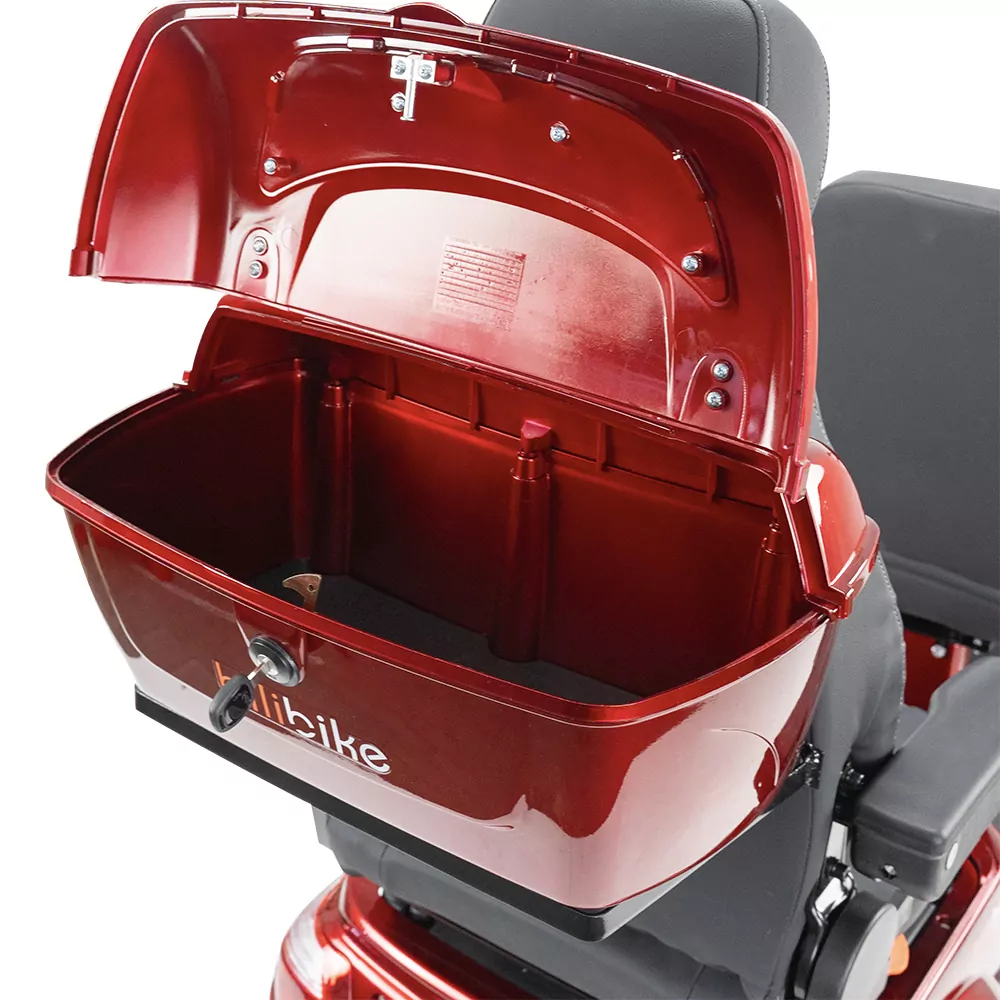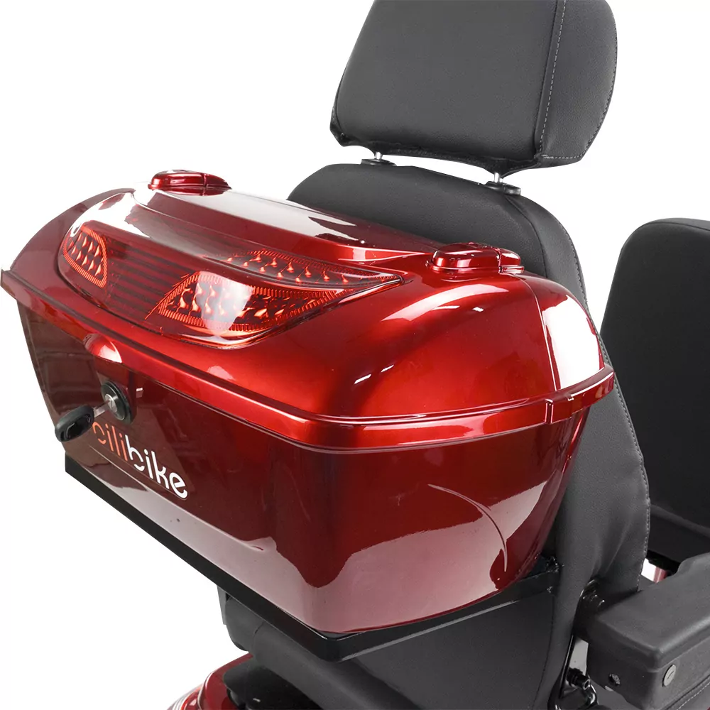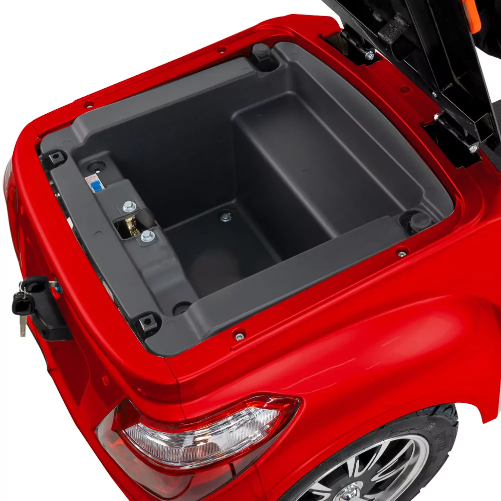 Wszystko, co najważniejsze pod ręką! Dzięki schowkowi pod kolumną kierowniczą przewieziesz to, co niezbędne. Dodatkowa, zabezpieczona kluczem, przestrzeń bagażowa znajduję się pod tylnym fotelem. To nie wszystko – pojazd ma możliwość rozbudowania o dodatkowy kuferek, który pomieści np. kask.